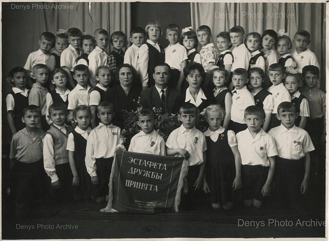 Це чорно-білий портрет учнів 2-Г класу середньої школи №69 Кривого Рогу, зроблений у 1965 році. У центрі кадру сидять вчительки та, ймовірно, директор, а перед ними — транспарант із написом «ЭСТАФЕТА ДРУЖБЫ ПРИНЯТА». Цей лозунг, сьогодні сприйнятний як пафосний, тоді був частиною повсякденного шкільного життя і символізував ідеали дружби народів і єдності, які виховували в кожному радянському школяреві.