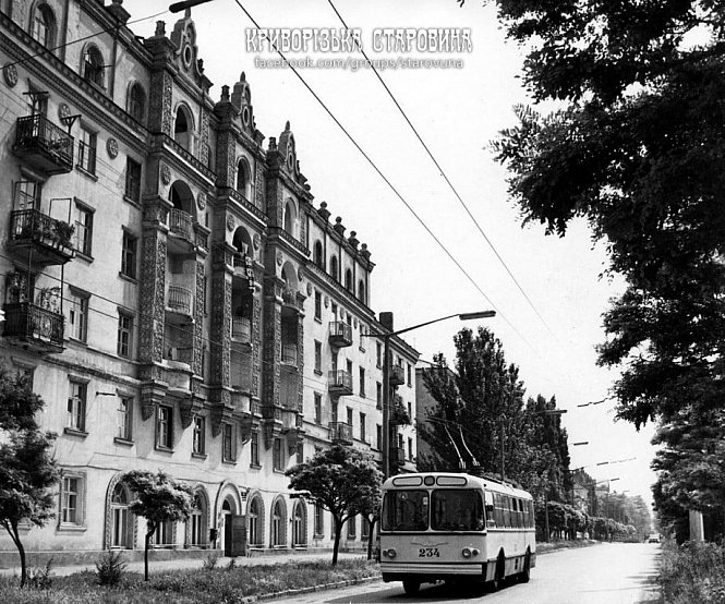 На фотографії липня 1980 року зображено вулицю Димитрова (нині Героїв АТО) у Кривому Розі. Видно тролейбус, що рухається вздовж дороги, та масивну багатоповерхівку.