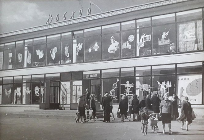 Знімок 20 вересня 1965 року, зроблений фотографом А. Запарою, показує універмаг «Восход» у Кривому Розі. На кадрі видно будівлю магазину з великими вітринами, прикрашеними малюнками, що робили фасад привабливим для відвідувачів. Перед входом стоять люди та дитячі коляски, передаючи повсякденне життя міста середини 1960-х років. Фото зберігається в Центральному державному архіві електронних та аудіовізуальних документів (ЦДАЕА).