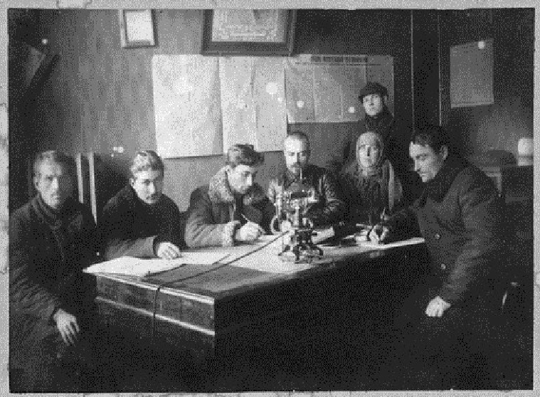 На фото — бюро партколективу рудні імені Карла Лібкнехта у Кривому Розі, 1 лютого 1925 року, в період післявоєнного відновлення шахти. За столом — члени партійного осередку: робітники, інженери, організатори виробництва.