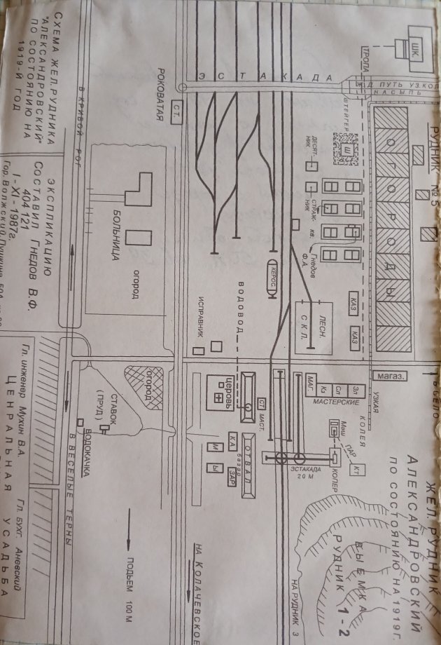Схема виробничої інфраструктури Олександрівського рудника, 1919 рік