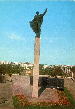 Фото І. Кропивницького. Відкритий у 1968 р. Автори пам'ятника - київські скульптори В. Довгань, Б. Климушко, М. Красоткін, художник І. Лось, архітектор М. Ланько. Листівка з комплекту "Кривой Рог. Комплект открыток на украинском и русском языках". Київ: «Мистецтво», 1971.