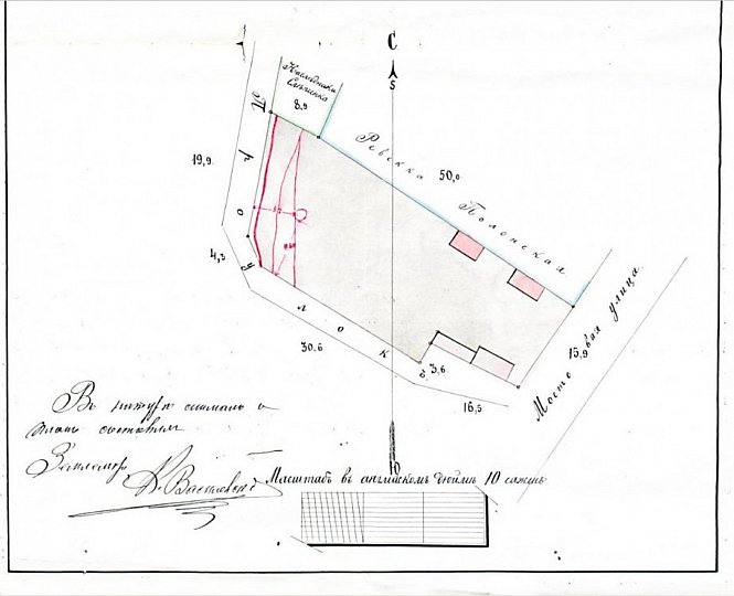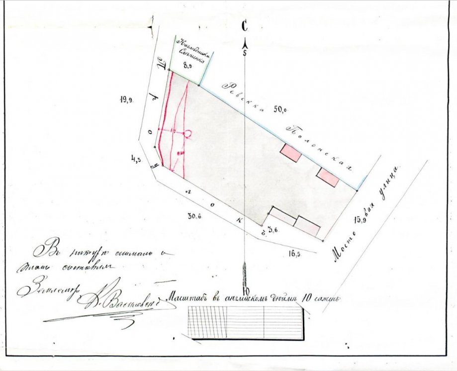 Планъ Херсонской губерніи, Херсонскаго уѣзда, усадебнаго участка земли въ мѣстечкѣ Кривомъ-Рогѣ владенія Трофима Наумовича Семки. Измереніе произведено 19-го сентября 1914 года.... На планѣ красными чернилами показано расположеніе трещинъ и впадины, находящихся на поверхности усадьбы. Тріщини та впадина утворилися внаслідок діяльності Нового товариства криворізьких залізних рудників (принаймні, це намагався довести у суді власник ділянки).