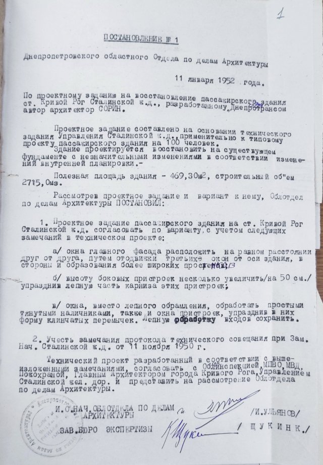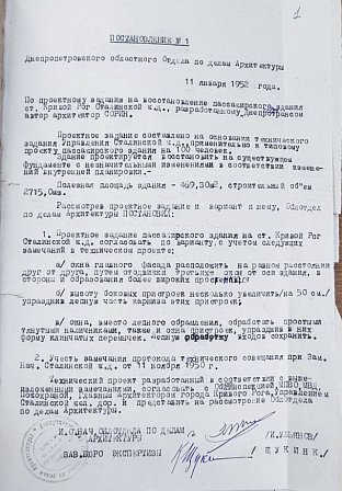 У цих документах знаходимо інформацію щодо відновлення будівель станцій Кривий Ріг (Західний) та Червона та забудови Дзержинки, 9-го кварталу, 1-ї дільниці.За фотографування в обл.архіві та удоступнення копій маємо дякувати Олександр Волок ДАДО Р-4479-1-24