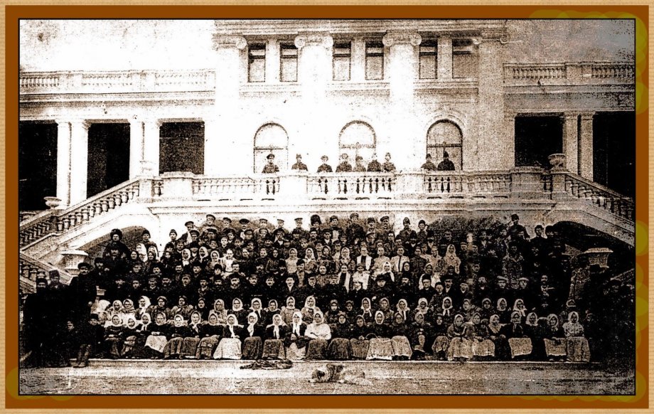 Світлина зроблена в 1915 році біля балкону Харінского маєтку зі сходу. Представники Державного Казначейства запросили солдаток Новопавлівки, чиї чоловіки воювали на фронті Першої Світової для видачі ГРОШОВОЇ допомоги. Крім солдаток на фото «присусідилися» і челядь маєтку. До речі! Колишні працівники економії Харіна говорили (у свій час), що на фото в третьому ряду в центрі літній чоловік з великими вусами то і є САМ Микола Платонович Харін.