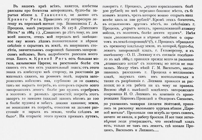 Клад Запорізького війська схований на криворізькій землі, поблизу кургану Царева могила, 1902 рік