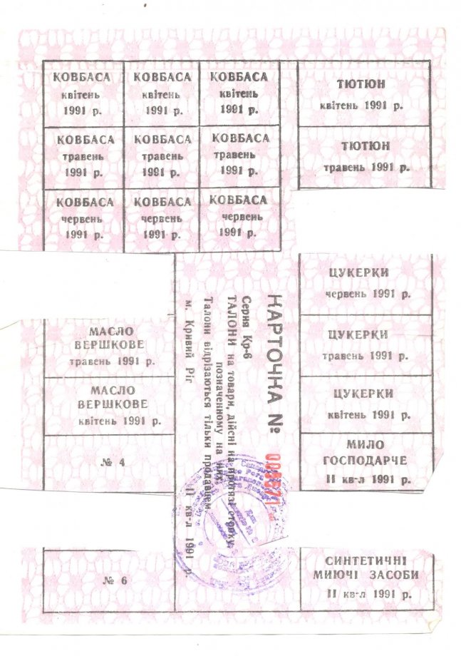 Картки (талони) на дефіцитні товари, квітень 1991