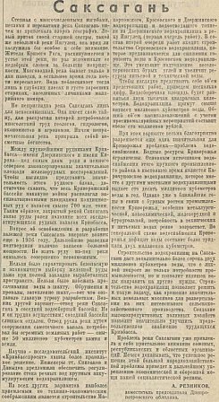 Стаття «Саксагань», газета «Известия», 20 вересня, 1945 рік