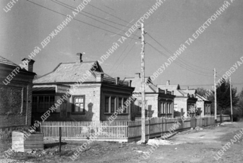 Вид нових будинків індивідуальних забудовників для робітників тресту «Кривбасруда» у м. Кривому Розі. Травень 1949 р. Вільтман.