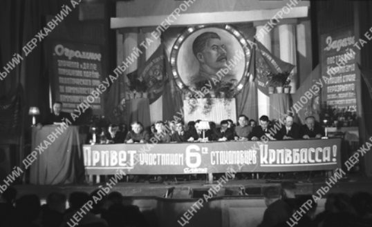 Президія 6-го зльоту «стахановців» Криворізького залізорудного басейну. м. Кривий Ріг Дніпропетровської обл. Березень 1948 р. Борщов.
