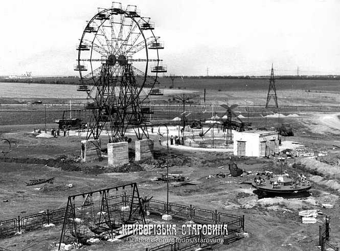 Будівництво атракціонів у парку ім. Комсомолу України (Північний). Фото 1960-х років. З архіву Петра Кузнецова.