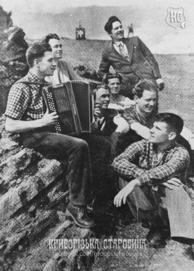 Молоді гірники шахти «Північна» під час відпочинку на Сланцевих скелях. Газета «Кіровець», 1960 рік. З фондів Десята бібліотека.