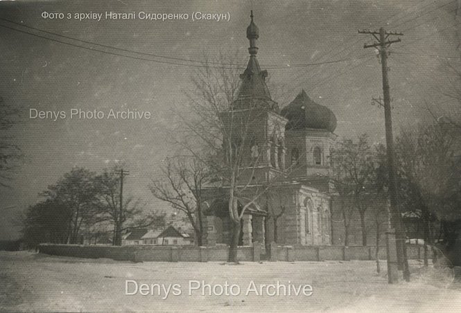 Покровська церква на Карнаватці, Кривий Ріг. Знімок, ймовірно, зроблено на початку 1964 року; навесні того ж року будівлю храму зруйнували. Фотографія з архіву Наталії Сидоренко (Скакун); найімовірніше, автором знімка є її батько, Скакун Іван Лукич.