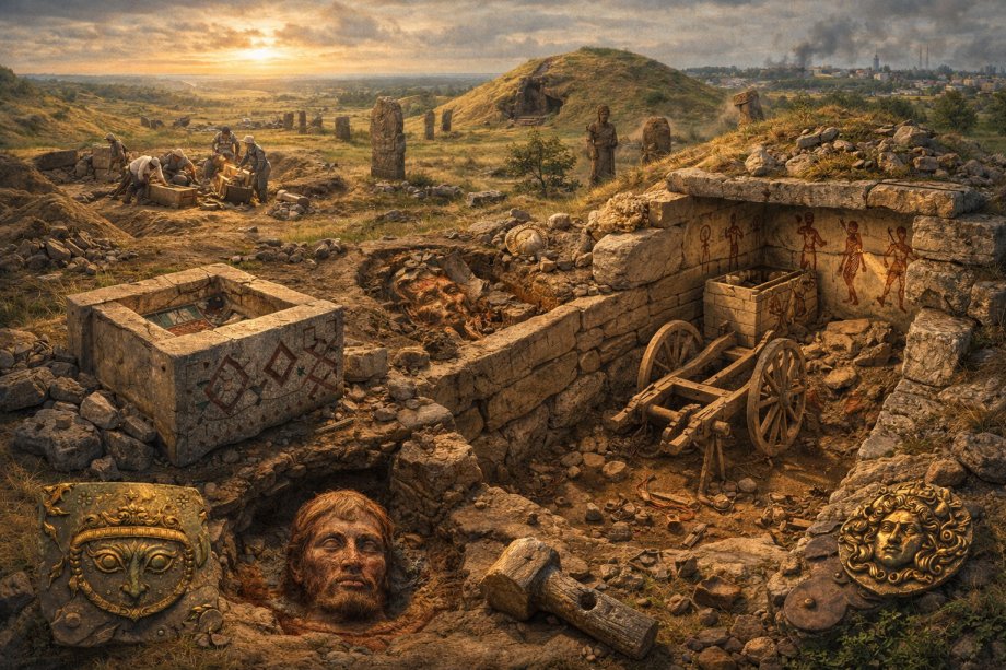 Археологічне дослідження Криворіжжя має понад столітню історію, починаючи з перших розкопок курганів Олександром Полем у 70-х роках XIX століття. Попри значущість початкових знахідок, систематичне вивчення регіону розпочалося лише у 1964 році. За цей час дослідники розкопали понад 100 курганів та вивчили більше 160 поховань, що охоплюють період від III тисячоліття до н. е. до середньовіччя. Сучасні дослідження спростували уявлення про кургани як про звичайні земляні насипи, довівши, що вони були складними архітектурними спорудами. На них зводилися вівтарі та встановлювалися перші антропоморфні скульптури — кам’яні стели. Ці об’єкти використовувалися як культові та релігійні центри. Особливий інтерес становлять будівлі з щільно підігнаних кам’яних плит, оздоблені малюнками вохрою, де часто зустрічаються мотиви поділу світу на земний та божественний. Однією з найзагадковіших знахідок стала геометрична композиція в кам’яній скрині, виявленій на території Південного ГЗК у 1969 році, яка досі залишається нерозшифрованою. Розвиток технологій давніх мешканців регіону підтверджується знахідками ямної культури, зокрема похованнями у возах. У 1987 році було знайдено унікальний віз із поворотним механізмом, що свідчить про високу майстерність тогочасних колісних майстрів. Згодом, у XX столітті до н. е., на зміну прийшли племена катакомбної культури, які запровадили звичай портретування померлих, відтворюючи риси обличчя за допомогою спеціальної глини та червоної вохри. У їхніх похованнях часто знаходять орнаментовані кам’яні сокири-молоти, що були символами влади. Епоха бронзи на Криворіжжі представлена також поселеннями з кам’яними наземними житлами, де мешканці займалися землеробством і ткацтвом. Знахідка глиняного глечика з календарем у вигляді 12 трикутників у мікрорайоні Зарічний вказує на наявність у давнього населення чітких уявлень про час. Подальша історія краю пов’язана з кіммерійцями, скіфами та сарматами. Скіфські пам’ятки, виконані у знаменитому «звіриному стилі», часто містять античні мотиви, як-от зображення Медузи Горгони, що свідчить про інтенсивні контакти з грецьким світом. Сарматський період відзначений багатими жіночими похованнями із золотими фібулами та інкрустованими прикрасами. Завершальним етапом стародавньої історії регіону стала черняхівська культура. Її представники мешкали у кам’яних будинках із печами-кам'янками та вівтарями-жертовниками, присвяченими аграрним божествам. Характерний для них біритуалізм (поєднання трупопокладення та трупоспалення) свідчить про складні релігійні уявлення, а велика кількість побутового інвентарю вказує на розвинену соціальну структуру та високий рівень ремесла. Археологічні знахідки, такі як «Царева могила» або черепи зі слідами медичних маніпуляцій, продовжують залишатися важливим джерелом для реставрації найдавнішого минулого Криворізького краю.