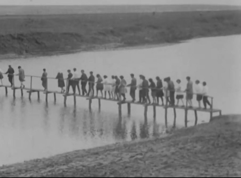 Святкування Міжнародного дитячого тижня”. Київ. Парад піонерських загонів з нагоди святкування Міжнародного дитячого тижня. Проходять колони прапороносців, фізкультурників, дітей у маскарадних костюмах тощо. ІІ. “Будування беконної фабрики”. Вінниця. Загальний вид будівництва Вінницької беконної фабрики. Будівля в риштуваннях. Будівельники за роботою. ІІІ. [Ювілей комуни.] Харківський округ. Святкування 10-ї річниці комуни “Червона зоря” в с.Волохівка. Мітинг. Танці. ІV. [Єдиний в Україні.] Київ. Корпуси Київського заводу хлороформу. Внутрішній вид цеху. Обладнання. Лабораторія. Проведення дослідів. Готова продукція. V. [Гості євреїв-переселенців.] Кривий Ріг. Делегація московських піонерів ознайомлюється з побутом і життям євреїв-переселенців. Загальний вид селища. Обід у полі. Сільськогосподарські роботи. VІ. [Трикотаж вищого гатунку.] Харків. Виробничі процеси на Харківській трикотажній фабриці Вукопромкредитспілки. Обладнання. Лабораторія. Готова продукція.